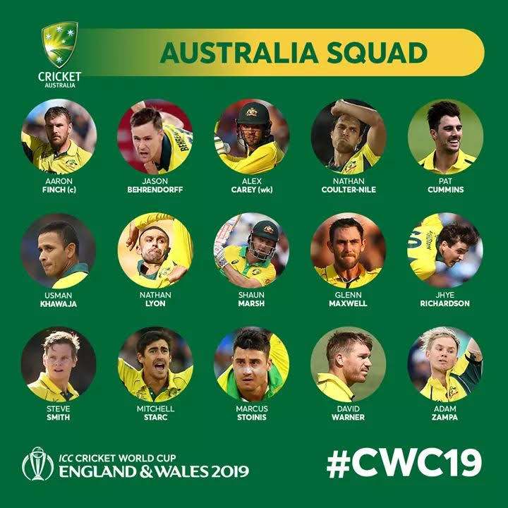 #CWC19 #Australia #ICC #ICCCricketWorldCup #Cricket #Team #WorldCupTeam #CWC2019 #ICCWorldCup #ODI #TeamSquad #CricketScores #CricketNews